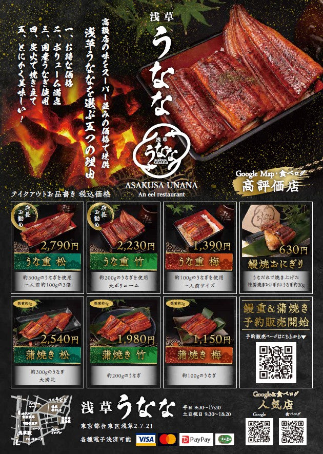 創業以来ご愛顧いただいている常連様、特に地元にお住まいの方々には、浅草うななの鰻重の美味しさ、ボリューム、そしてお手頃な価格を熟知しています。ありがとうございます。現在は飲食専用スペースを設けていますが、もともとはテイクアウト専門店として始まった浅草うななです。国産鰻の鰻重や蒲焼は、備長炭で丁寧に焼き上げておりますが、価格はお惣菜店と同等の設定です。「スーパーで買うよりも、焼きたてを楽しめる浅草うななの鰻重や蒲焼が味、コストパフォーマンスともに優れている」とお話しいただく常連の皆様の支えがあって、浅草うななは成長してきました。これからも地域の皆様に愛される店舗を目指して参ります。もちろん浅草観光にいらした方も、国産鰻を存分に味わいたい方は、ぜひ鰻重や蒲焼をお試しください!
