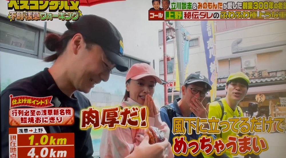 TBS ベスコングルメで浅草うななの国産鰻の焼きおにぎりをピックアップしていただきました! 川島さん、鈴木亜美さん、アンタッチャブル 柴田さん、そしてベスコンボーイさんご来店ありがとうございます💛